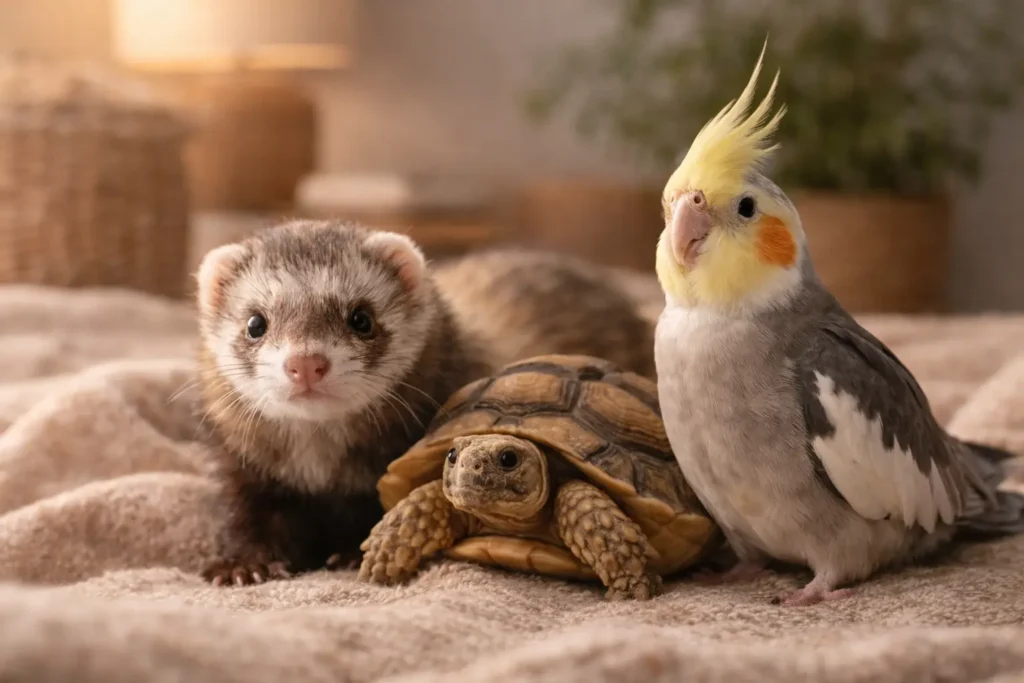 Guides complets pour les NAC : furet, tortue, oiseaux et petits animaux, avec des conseils pratiques et des accessoires adaptés.